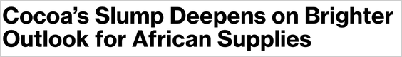- Cocoa prices extended their sharp decline, hitting the lowest level since early 2024 as stronger Ivory Coast port arrivals and benign weather improved supply expectations.