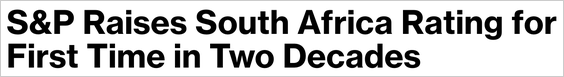 - S&P upgraded South Africa’s sovereign rating to BB, its first upgrade since 2005, citing improved growth prospects, fiscal consolidation, and reduced state-owned enterprise risk.