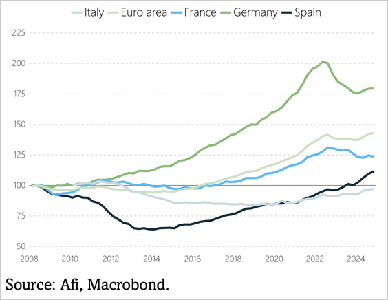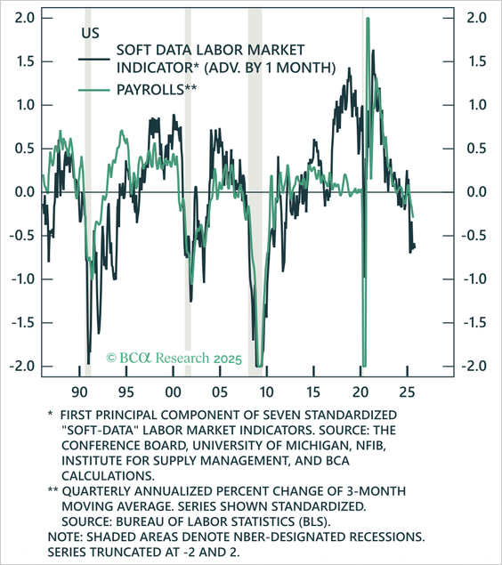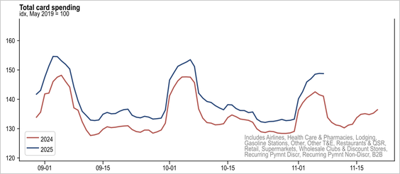Zooming out, weak consumer sentiment and a softening labor market have not translated into a noticeable deceleration in overall economic activity so far.