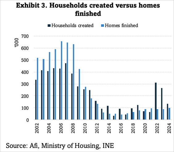 Its housing market has flipped from surplus to shortage: in 2002–08 it built 1.4 homes per new household, but in 2025 only one home is completed for every 1.6 households formed.