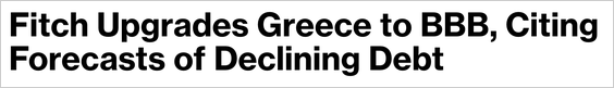 - Fitch upgraded Greece’s sovereign rating to BBB from BBB- with a stable outlook, citing sustained fiscal discipline, ongoing debt reduction, and continued primary surpluses.