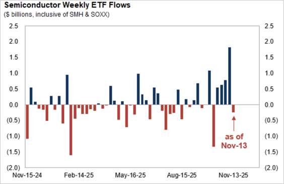- Semiconductor ETFs posted their first weekly outflow in five weeks.