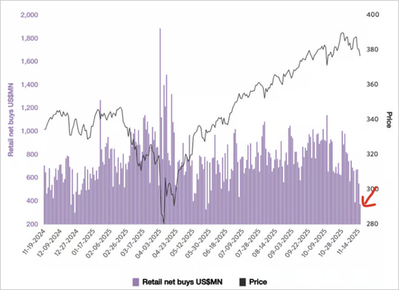 - Retail net buying is near its lowest level year-to-date.