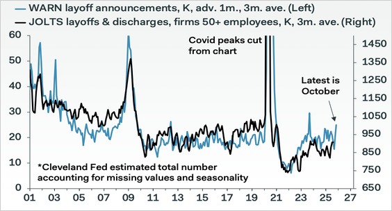 - The WARN data, which showed that the number of planned mass layoffs increased to 44K in October, generated some negative headlines.