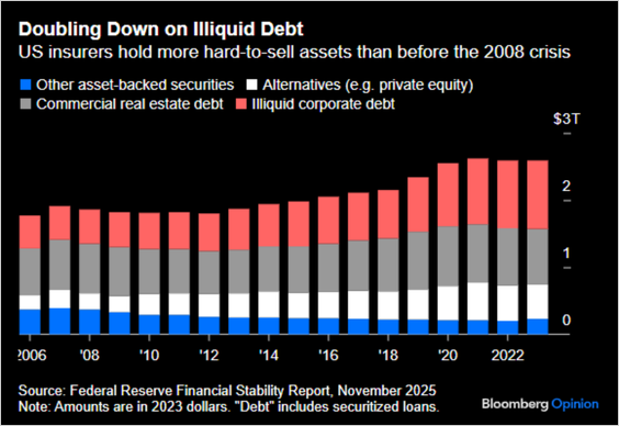 - US insurers hold more hard-to-sell assets than before the 2008 financial crisis.