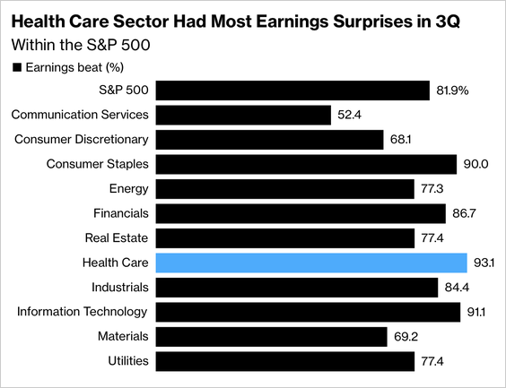 - US health-care companies delivered the strongest earnings beats in the S&P 500 last quarter.