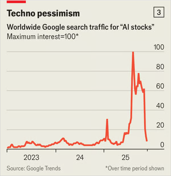 - Google searches for “AI stocks” have slumped sharply in recent months.