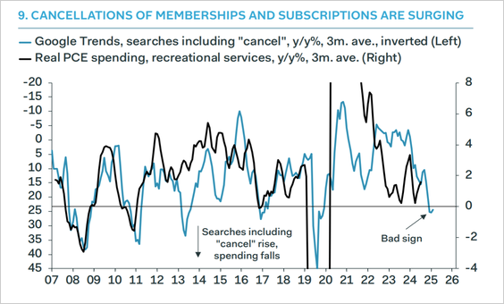 - Google search trends related to subscription cancellations have risen, which could point to lower consumer prices.