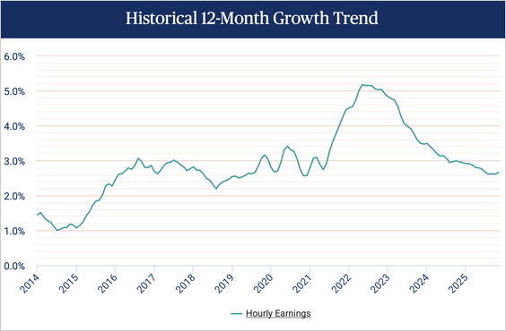 - The Atlanta Fed's Wage Growth Tracker was unchanged at 4.1%. Wage growth for job switchers increased to 4.6%, while wage growth for job stayers held at 3.8%.