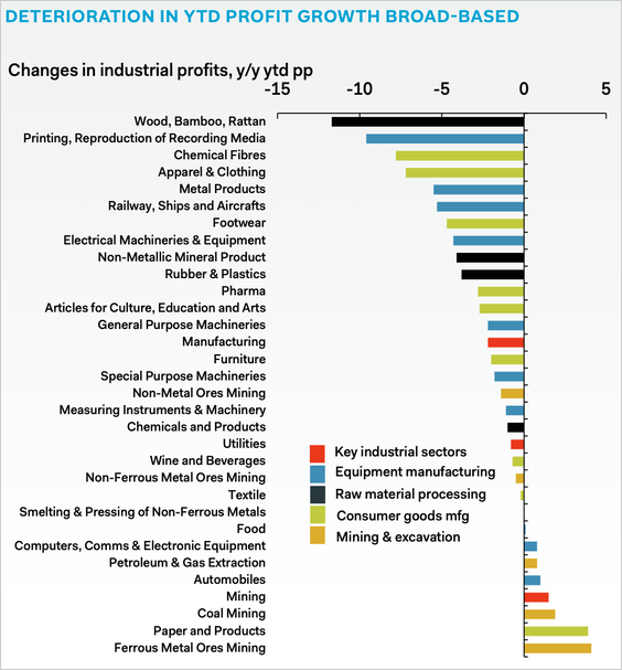 This chart shows that the deterioration in industrial profit growth has been broad-based.