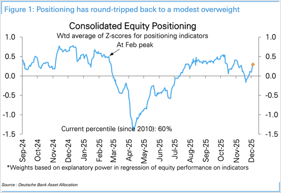 - Deutsche Bank’s positioning index has rebounded to turn modestly overweight.