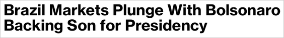 - Brazilian assets sold off sharply after Jair Bolsonaro said he would back his son Flavio for the 2026 presidential race.