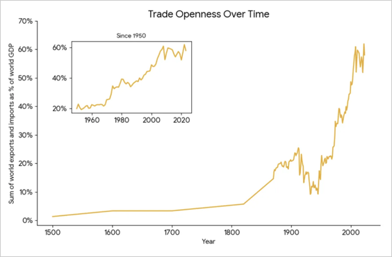 - Trade openness has leveled off, signaling the end of hyper-globalization.