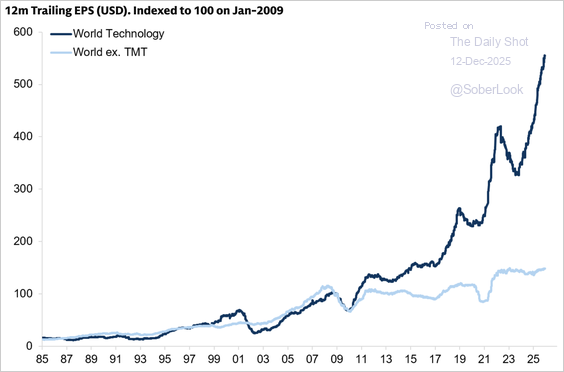 - This chart highlights the realized earnings growth of global tech companies versus non-tech companies.