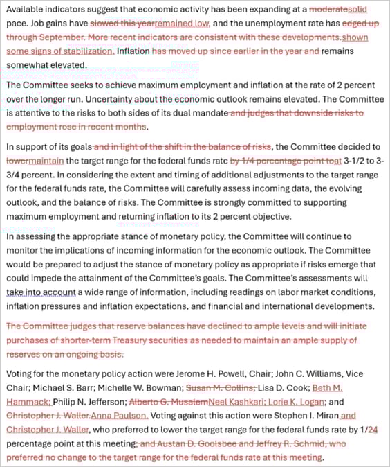 • Governors Stephen Miran and Christopher Waller dissented in favor of a 25 bps cut.
