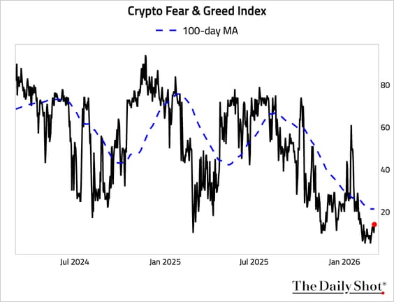 1. The Crypto Fear & Greed Index ticked higher last week, although it is still in “extreme fear” territory.
