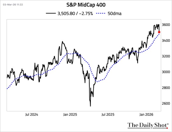 • The MidCap 400 index slumped below its 50-day moving average, …